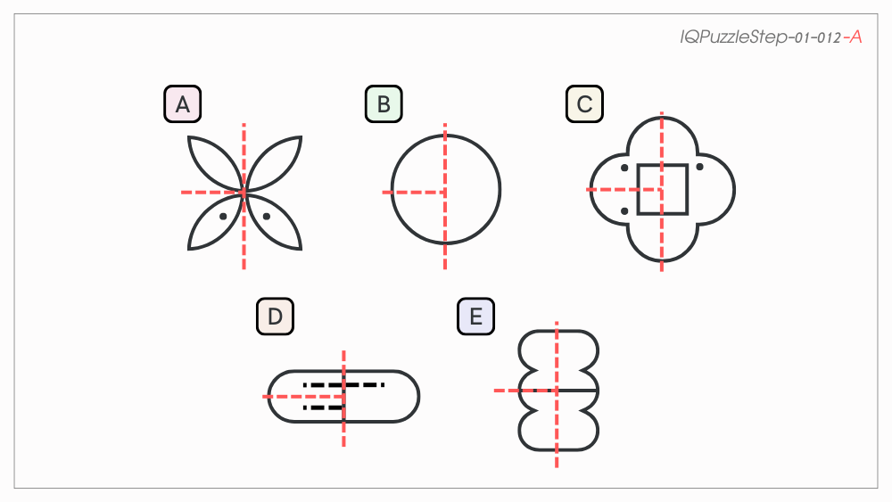 これは、図形を縦半分に切り、その左側が上下対称かどうかがルールになっています。よって答えは、A でした。